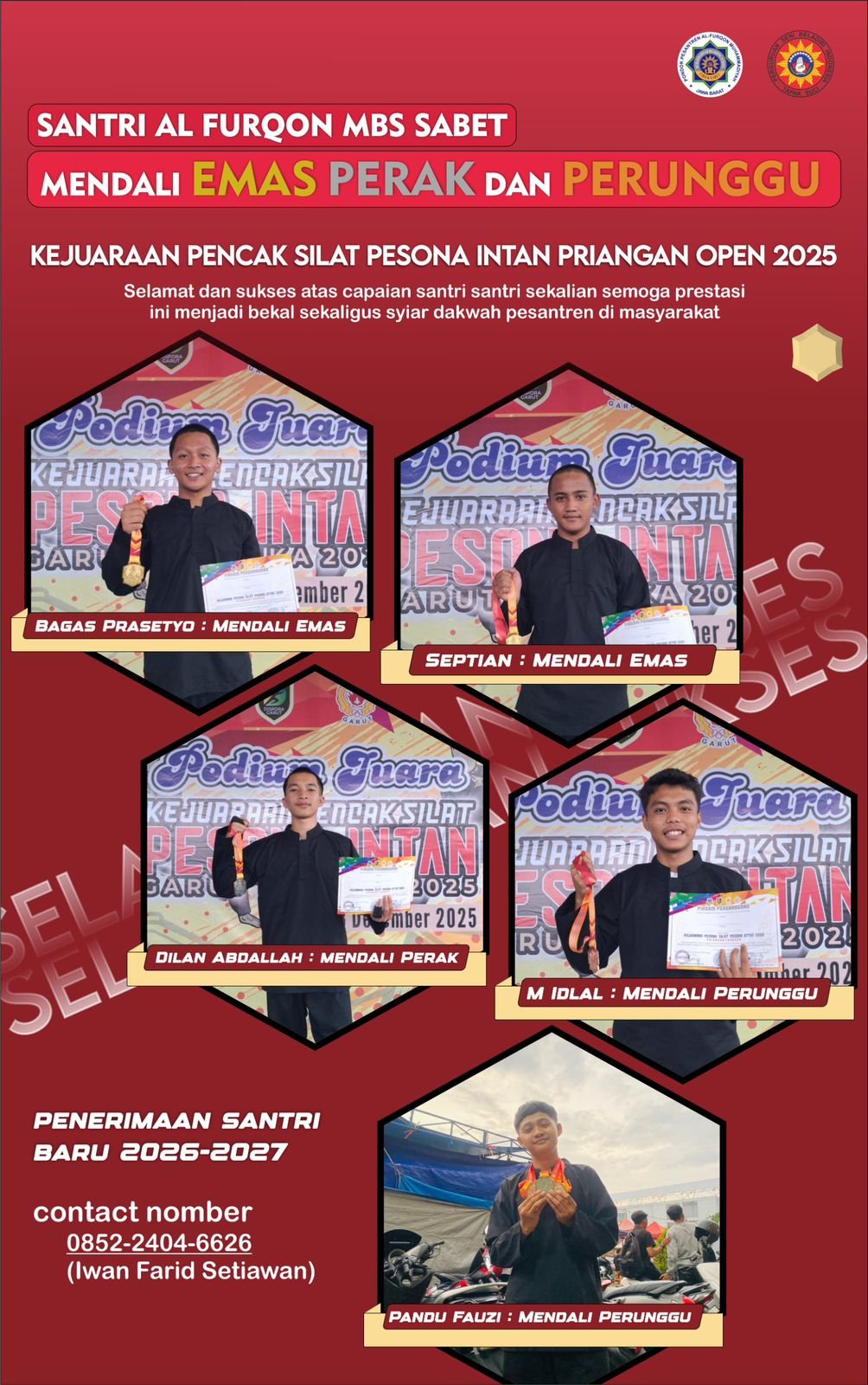 Alhamdulillāh, santri Al Furqon Muhammadiyah Boarding School (MBS) kembali menorehkan prestasi membanggakan pada ajang Kejuaraan Pencak Silat Pesona Intan Priangan Open 2025. Dalam kejuaraan tersebut, para santri berhasil meraih mendali 2 Emas,1 Perak, dan 2 Perunggu, menunjukkan kualitas pembinaan yang berkelanjutan di bidang akademik maupun nonakademik.